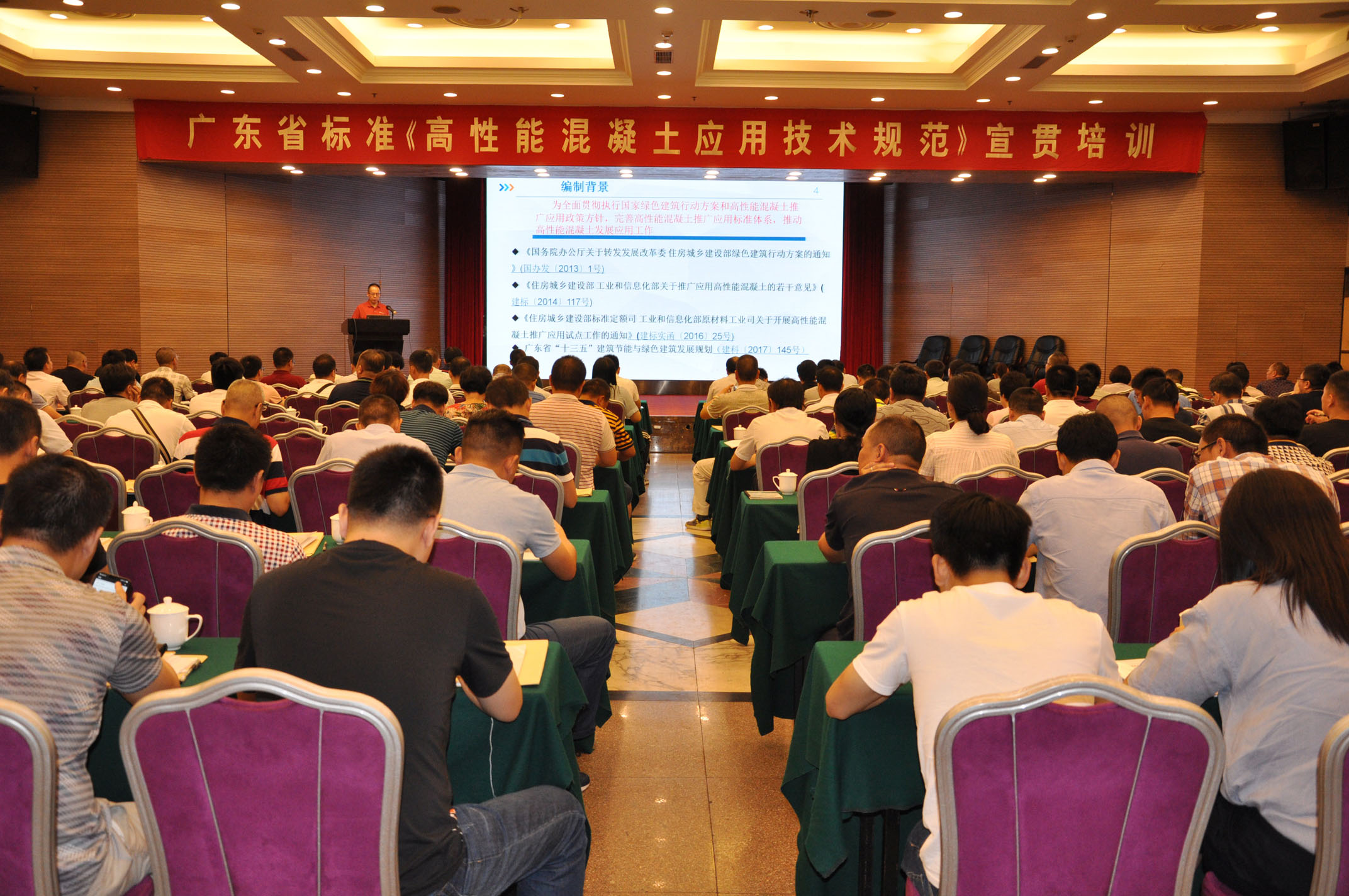 宣贯会由深圳市协会陈爱芝会长主持,广东省住建厅节能处袁庆华处长首先于会上就《规范》的编制背景、目的、内容特点及下步工作要求进行简述,袁处长指出:该《规范》对高性能混凝土的发展应用具有指导意义,为高性能混凝土的设计、生产、施工、验收及评价提供了依据,科学合理,具有创新性、引领性和可操作性,填补了当前涵盖高性能混凝土应用全过程技术标准的空白,并与现行相关标准相协调,达到国内领先水平。