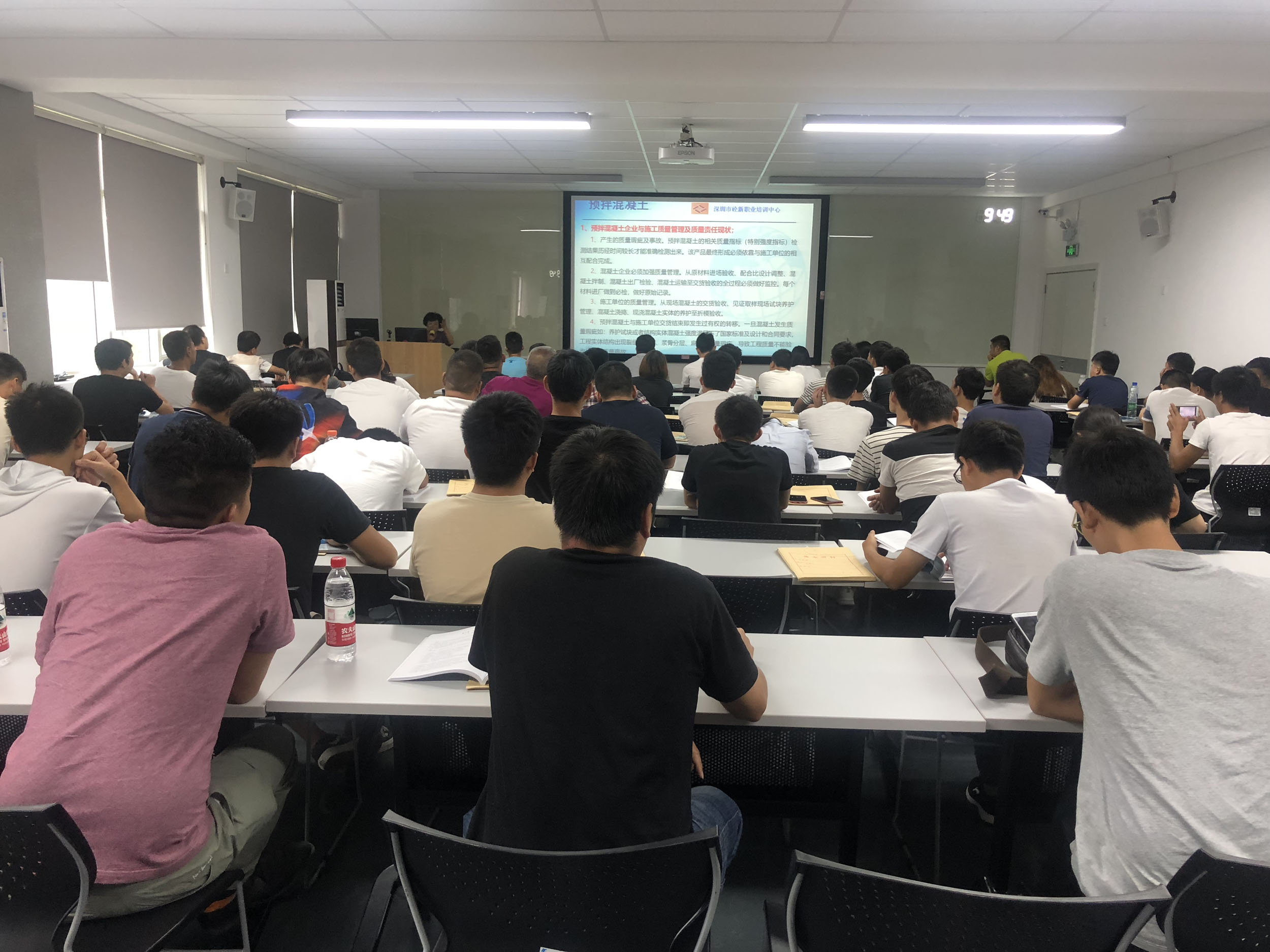 2018年9月5日至7日,深圳市砼新职业培训中心在深圳青年学院举办预拌砂浆、预拌混凝土生产企业试验员岗位培训班,全市80余名试验员参加了理论学习和实践操作培训。其中,7日上午进行了理论考试;下午于南山区茶光路天地混凝土有限公司试验室进行实践操作培训。