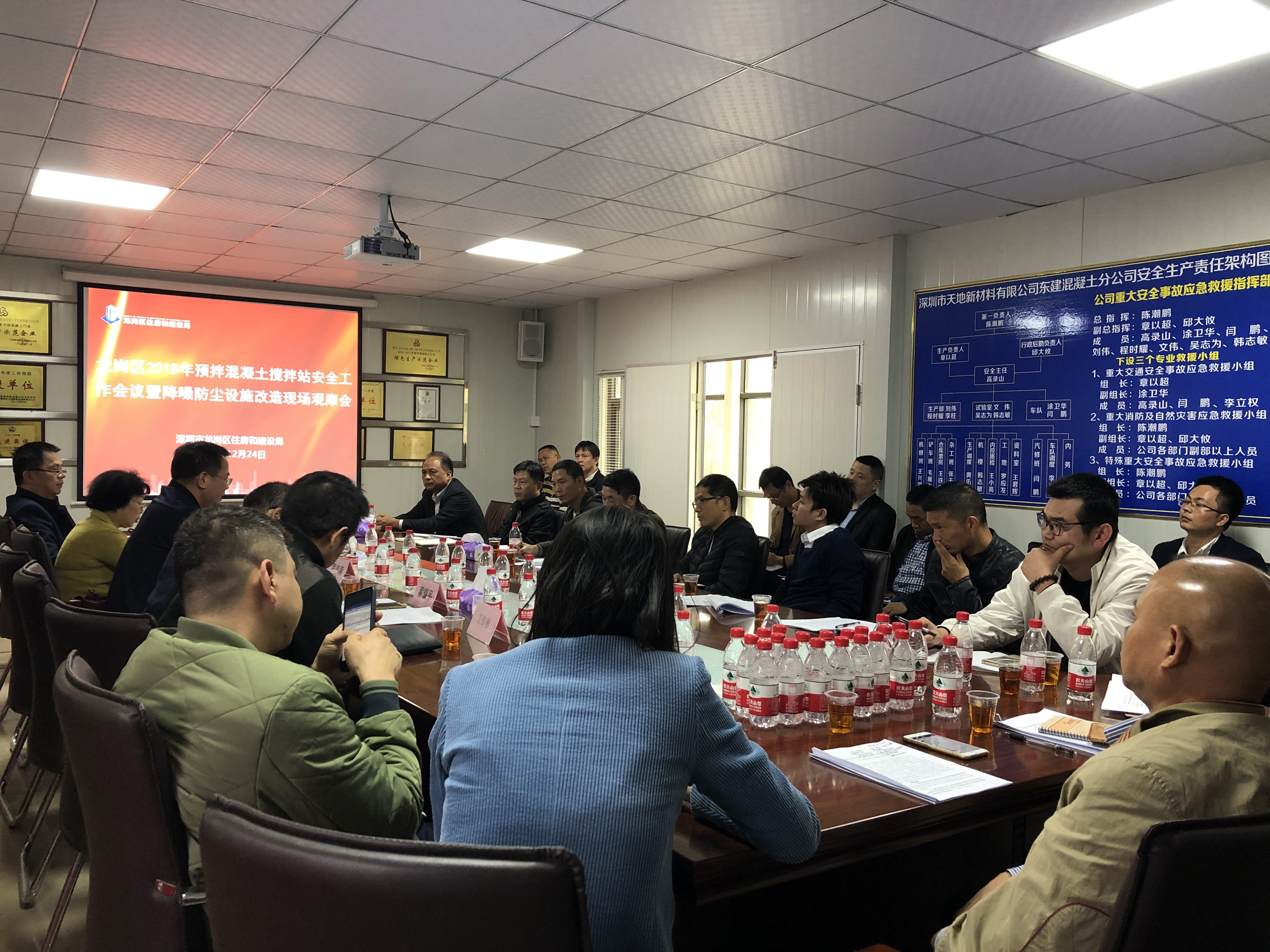 为加强龙岗区预拌混凝土搅拌站安全管理工作,加快推进全区混凝土搅拌站降噪防尘设施改造,提升扬尘污染防治能力和绿色生产水平,2018年12月24日下午,龙岗区住建局组织召开了龙岗区2018年预拌混凝土搅拌站安全工作会议暨降噪防尘设施改造现场观摩会,龙岗区住建局罗伟南副局长、区节能建材办相关负责人,市水泥协会陈爱芝会长、艾传彬秘书长及龙岗区25家预拌混凝土生产企业主要负责人参加了此次了会议。