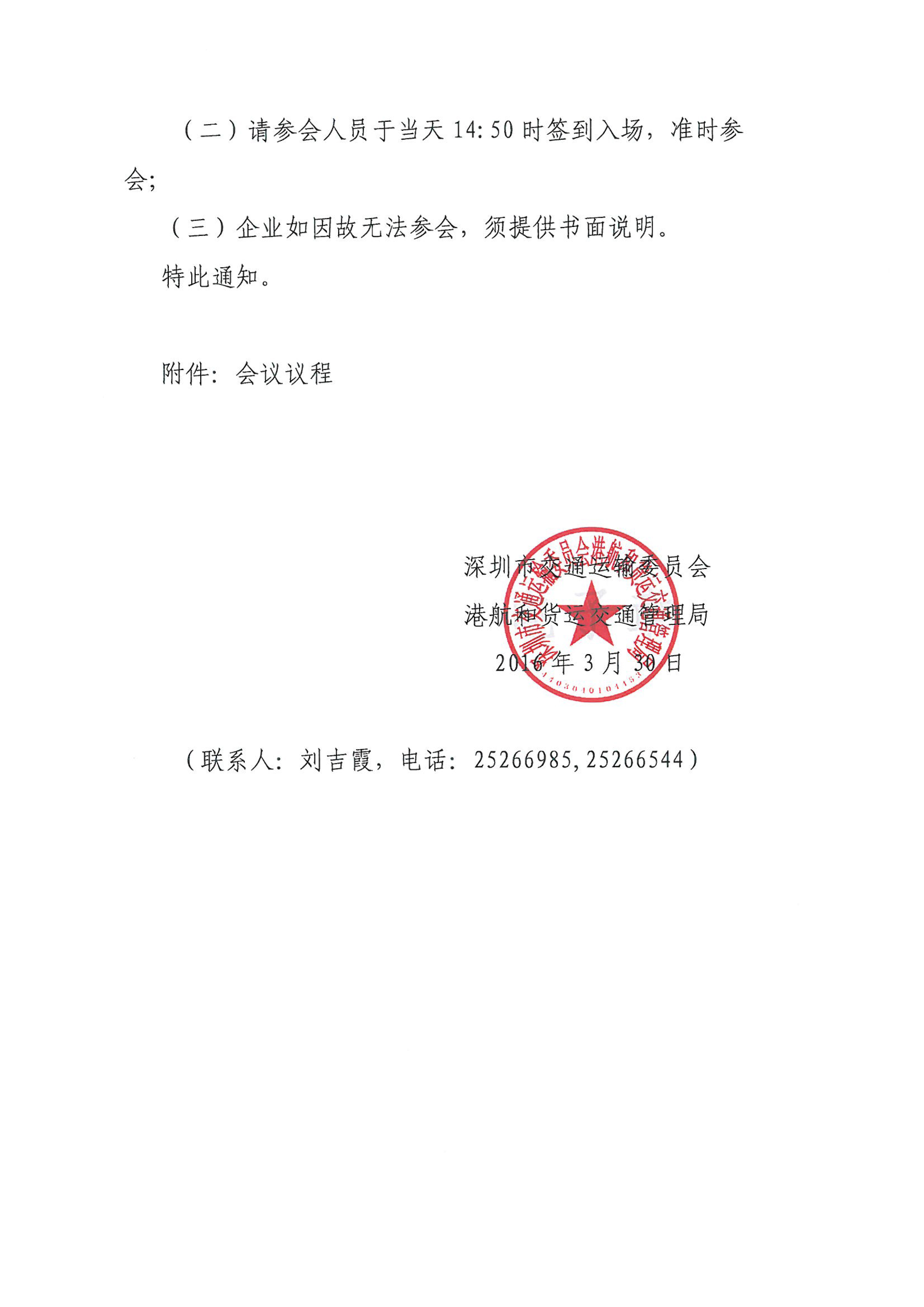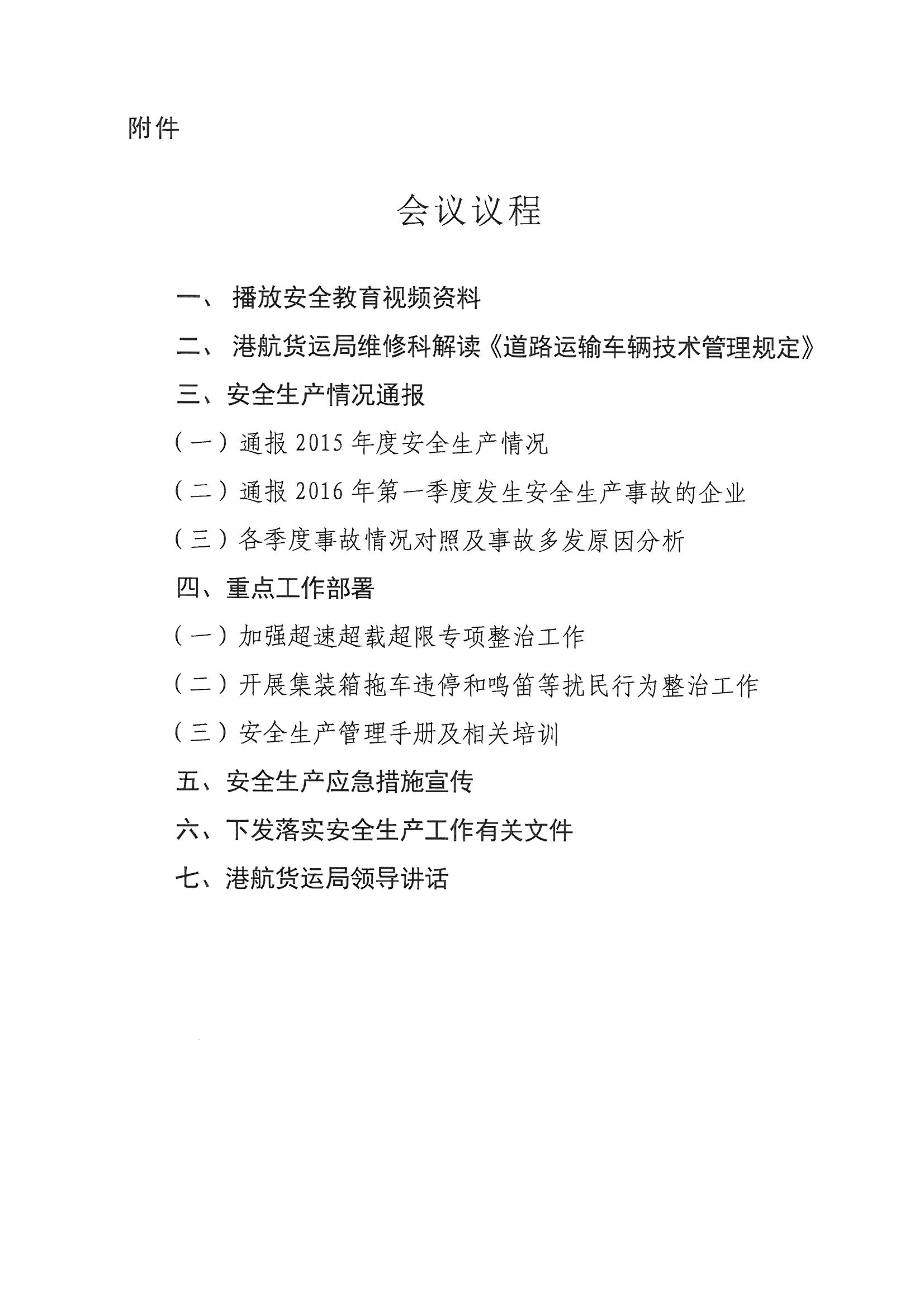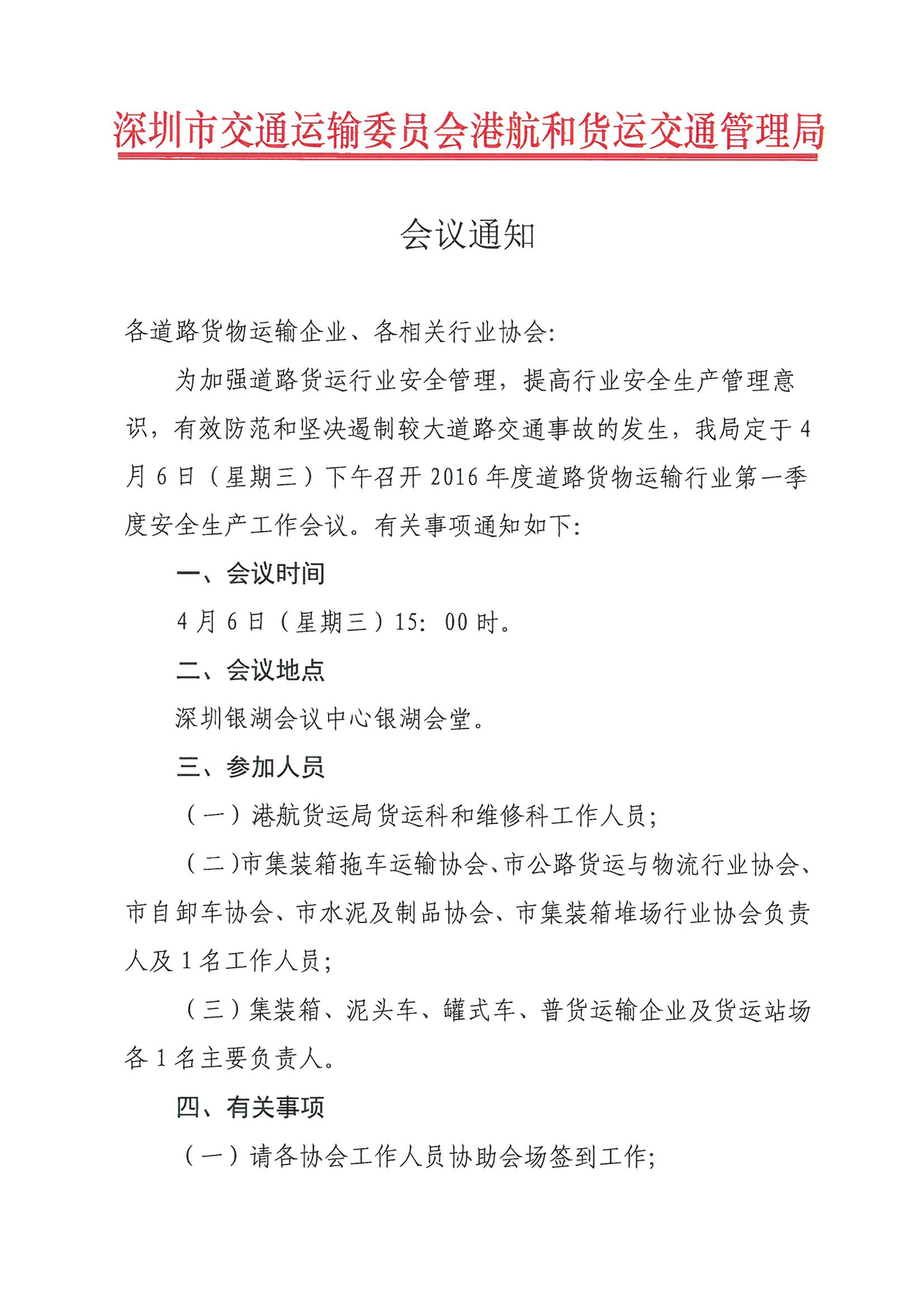 关于深圳市交委港航货运局2016年第一季度安全会议的通知