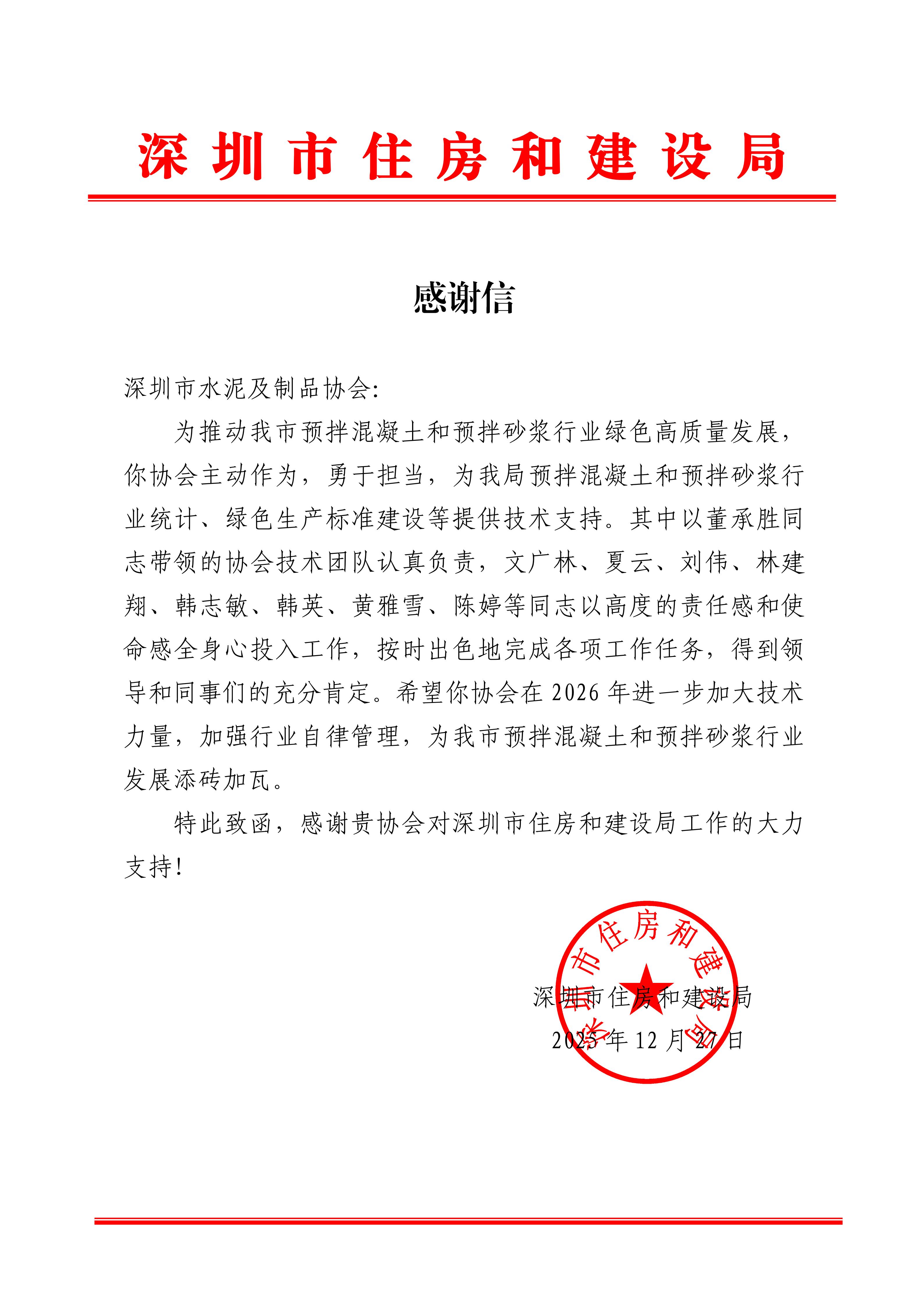 ·协会获市住房建设局感谢信 携手共促行业绿色发展