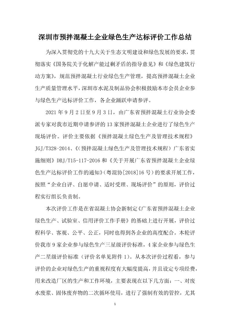 深圳市预拌混凝土企业绿色生产达标评价工作总结