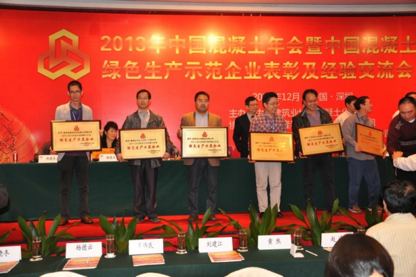 大会还表彰了2011-2012年度中国混凝土行业绿色生产示范企业,深圳市鹏城基业混凝土有限公司、华全混凝土有限公司、安托山混凝土有限公司、为海建材有限公司四家企业被表彰为绿色生产示范企业。