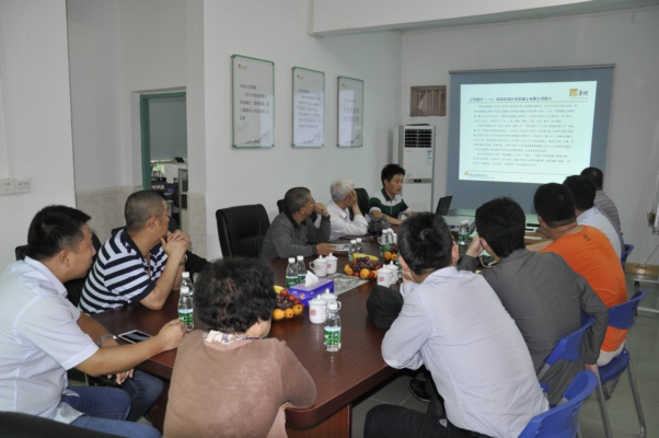 图二:华润文伟技术负责人赵新科(左排最前操作电脑者)向冯乃谦一行介绍企业发展情况