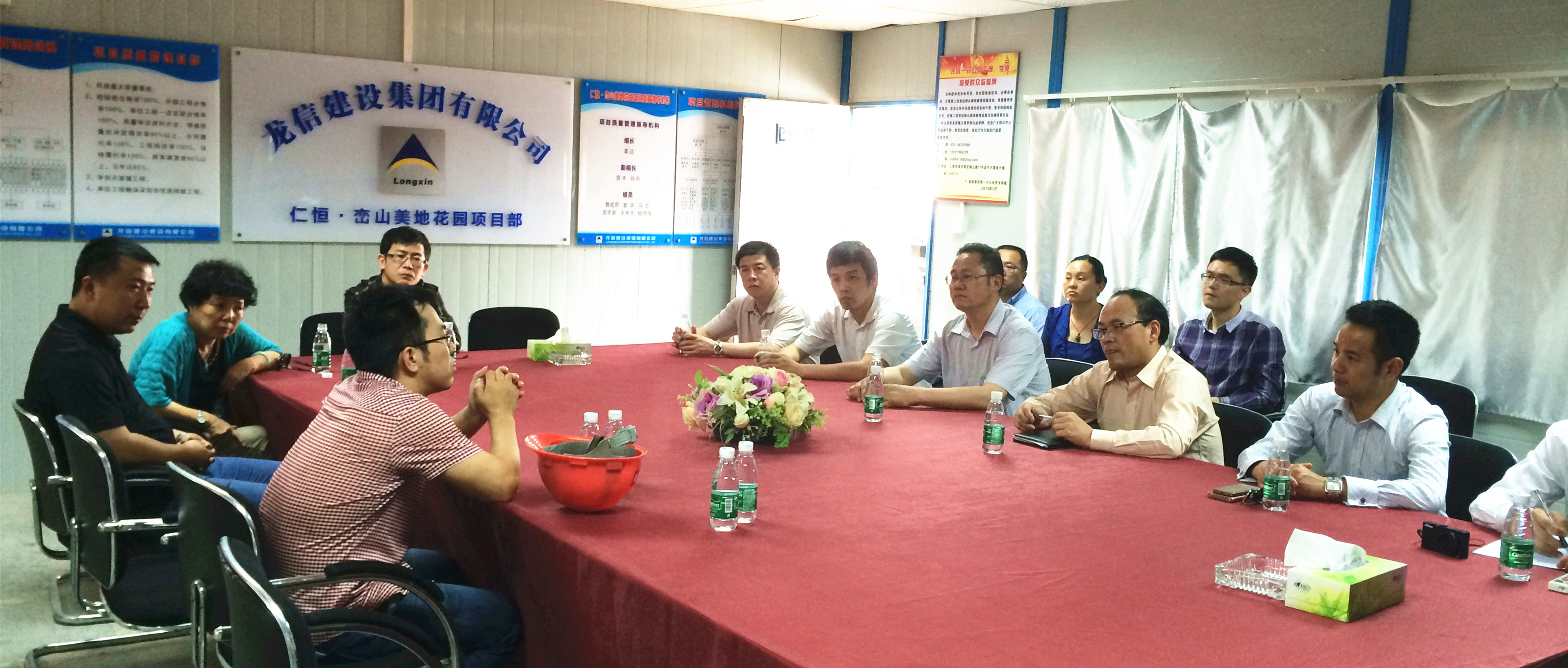 上图为 浙江省散办考察团在建设工程方——峦山美地项目部座谈