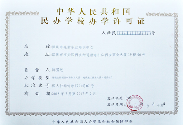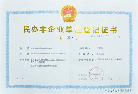 该中心是经深圳市人力资源和社会保障局批准成立(民办学校办学许可证编号:人社民4403013150123),并在深圳市民政局登记备案。该中心今后将开展面向预拌混凝土、预拌砂浆、水泥制品、建筑施工的行业混凝土配制及制品加工人员、建筑施工技术人员开展专业技术培训。