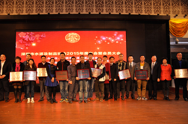 大会最后一项议程是对2014-2015年度深圳市水泥及制品行业“先进企业”进行授牌仪式,其获得先进表彰的企业分别是:深圳市安托山混凝土有限公司、深圳市天地(集团)股份有限公司、深圳华润混凝土有限公司、深圳市为海建材有限公司、深圳市华全混凝土有限公司、深圳市高新建混凝土有限公司、深圳市振惠建混凝土有限公司、深圳市晋荣混凝土有限公司、深圳市新豪混凝土有限公司、深圳市港龙混凝土有限公司。