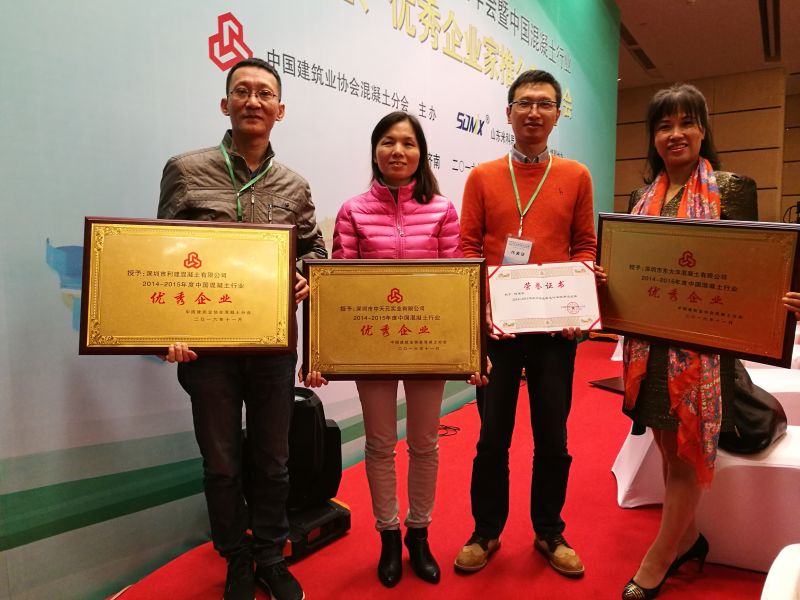 图三:深圳市获评“2014~2015年度中国混凝土行业优秀企业”代表合影