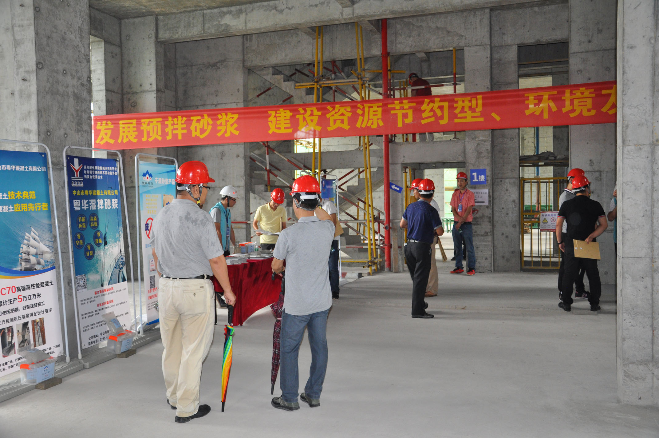 根据《中山市人民政府关于限期禁止施工现场搅拌砂浆的通告》(中府通[2015]1号)有关文件要求,为提高建筑工程质量,提升城市环境空气质量,促进安全文明施工和技术进步,加快预拌砂浆在中山市的推广应用,配合“自2017年7月1日起,中山市行政区域范围内逐步实现全面禁止施工现场搅拌砂浆”工作要求的落实,由中山市住房和城乡建设局主办,深圳市砼新职业培训中心承办,中山市水泥制品行业协会及相关企业协办的“中山市预拌砂浆推广应用示范现场会”于2017年6月9日在中山市博爱七路“远洋新天地”项目现场隆重召开。中山市散装水泥管理站刘军站长、王先芬副站长以及中山市及各镇住建局、建设工程设计、监理、施工、预拌混凝土(砂浆)企业等单位相关代表约200余人到现场进行了实地观摩与学习。