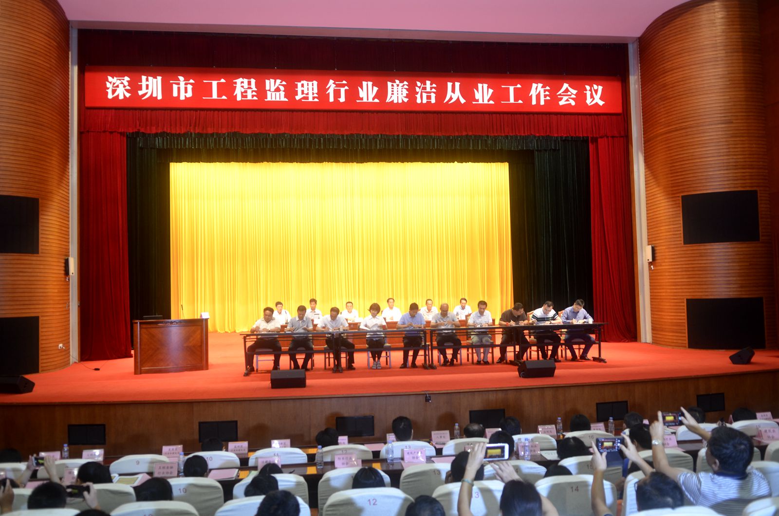 为加强工程监理行业诚信体系建设,提高行业廉洁自律工作水平和市场主体廉洁从业意识,推动工程监理企业诚信守法经营,监理人员廉洁从业,促进工程监理行业的转型升级和创新发展。2017年9月20日下午,深圳市住房和建设局在深圳会堂召开深圳市工程监理行业廉洁从业工作会议,正式启动实施《深圳市工程监理行业廉洁从业工作方案》。我协会会长陈爱芝、秘书长梁伟应邀前往参会。