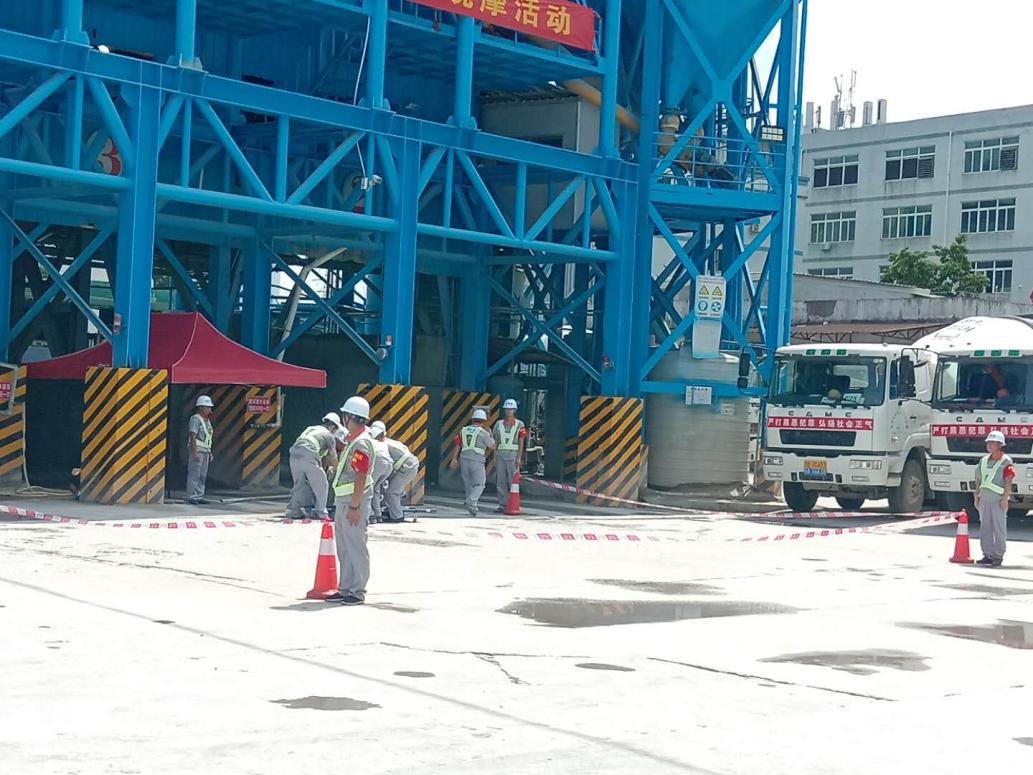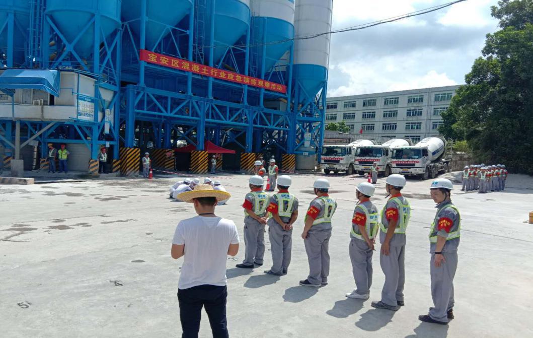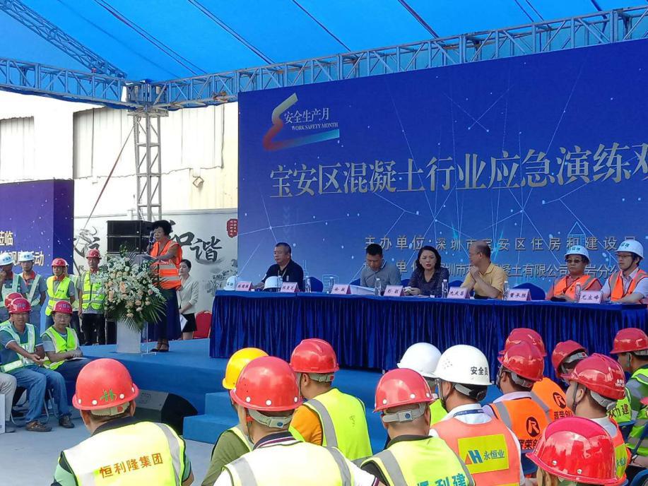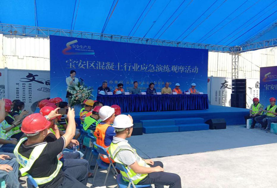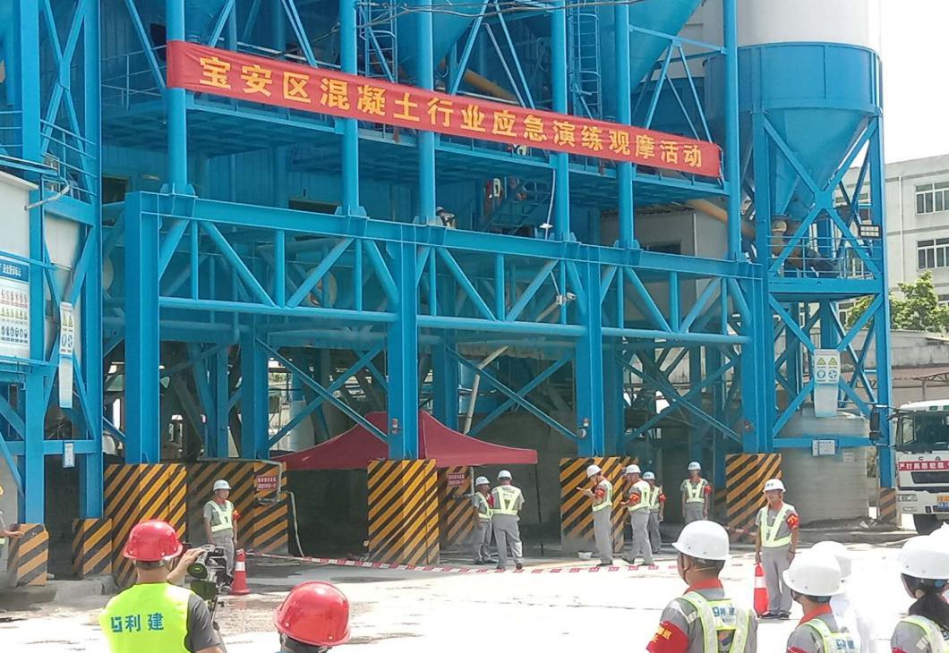 2019年6月28日上午,宝安区住房和建设局在深圳市利建混凝土有限公司石岩分公司举办了宝安区混凝土行业应急演练观摩活动。深圳市宝安区住房和建设局彭颖局长、冼庆昌副调研员,石岩街道办城建科徐敏科长、市水泥及制品协会陈爱芝会长、艾传彬秘书长等领导出席了观摩活动;宝安区各预拌混凝土、预拌砂浆和预制构件生产企业的负责人、安全负责人、安全员共100余人参加了活动。