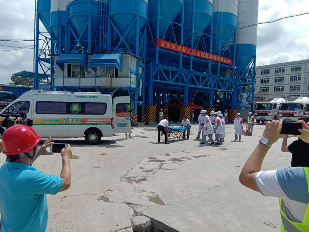 随后,宝安区混凝土行业应急演练活动正式开始,演练分为五个步骤:一、演练队伍就位,向总指挥汇报;二、模拟事故发生;三、应急救援小组集结;现场成立现场指挥部,同时组建现场抢险组、疏散警戒组、医疗救护组、通讯保障组、后勤保障组等5个应急抢险队伍;四、开展警戒疏散、抢险救援、事故信息上报、医疗救护、事故调查等应急处置;五、伤员妥善安置,向总指挥汇报,演练结束。