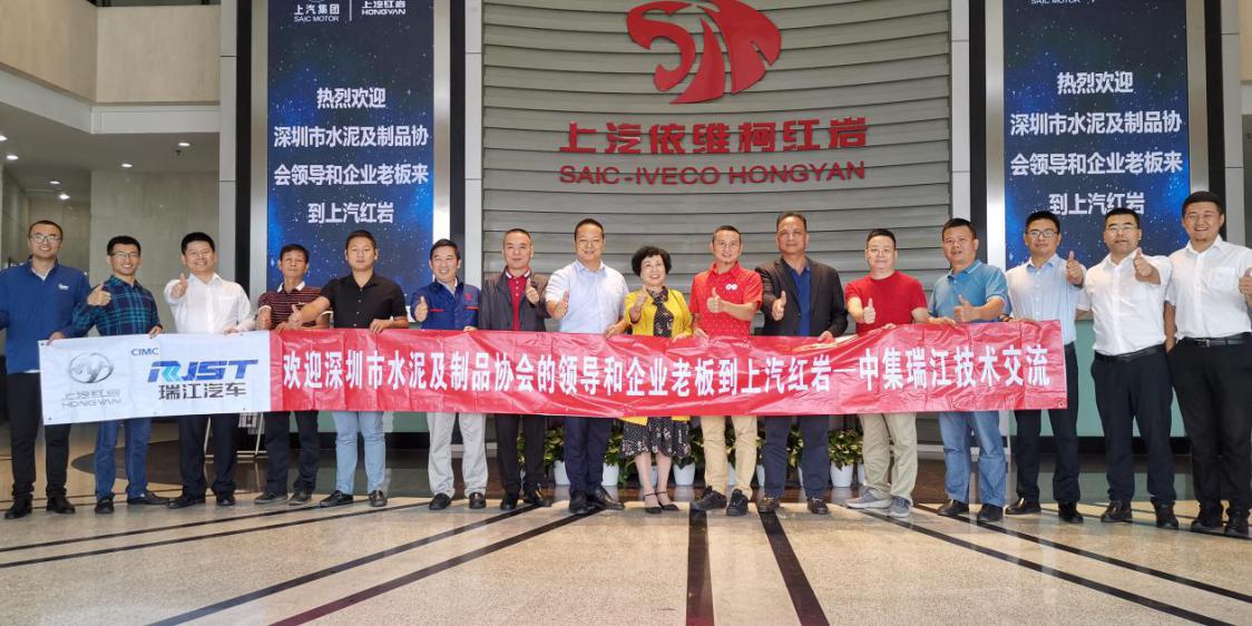 为响应交通运输部办公厅贯彻实施《超限运输车辆行驶公路管理规定》政策,深圳市混凝土行业批量更换新型法规轻量化搅拌车,迎合法律法规,规范经营。面对市场轻量化搅拌车发展不成熟的问题,为寻找一款符合深圳市要求安装DPF(颗粒捕捉器),安全、环保、节约成本的搅拌车产品,2019年9月20日深圳市水泥及制品协会陈爱芝会长携同深圳市晋荣建材、东大洋混凝土、东大洋建材、万成、港龙等多家协会会员单位走访考察了产品设备厂家上汽依维柯红岩商用车有限公司(以下简称“上汽红岩”)。