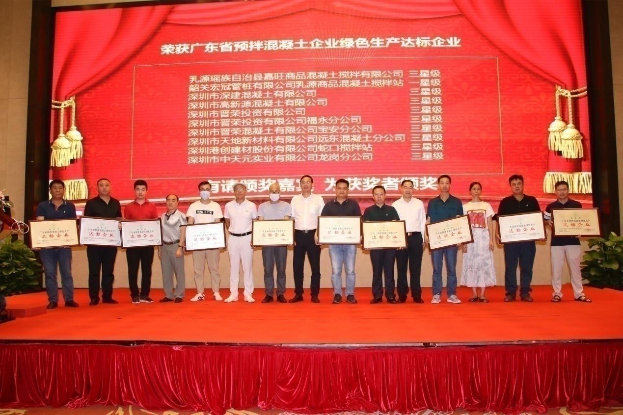 会议最后由省协会毛山红总工介绍了2020年我省预拌混凝土企业绿色生产达标企业情况。全省上半年共有21家企业获得了绿色生产达标星级企业,其中深圳市深建混凝土有限公司、深圳市高新源混凝土有限公司、深圳市晋荣投资有限公司、深圳市晋荣投资有限公司福永分公司、深圳市晋荣混凝土有限公司宝安分公司、深圳市天地新材料有限公司远东混凝土分公司、深圳港创建材股份有限公司蛇口搅拌站、深圳市中天元实业有限公司龙岗分公司、深圳市港龙混凝土有限公司等9家预拌混凝土企业获得绿色生产三星级达标企业,至此我市共有36家企业荣获三星级达标企业,数量在全省行业内位居前列。