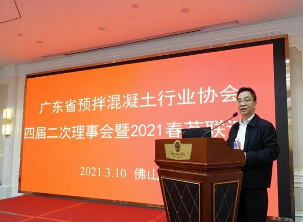 2021年3月10日下午2点,广东省预拌混凝土行业协会四届二次理事会暨春茗联谊会在佛山成功召开,广东省各市行业协会负责人、行业专家、相关企业代表近200人参加了本次会议。广东省住房和城乡建设厅科信处袁庆华处长、周锦科四级调研员,佛山市、梅州市、云浮市等行业主管部门负责人出席了会议。我协会陈爱芝会长和潘亚波秘书长也应邀参加了此次会议。