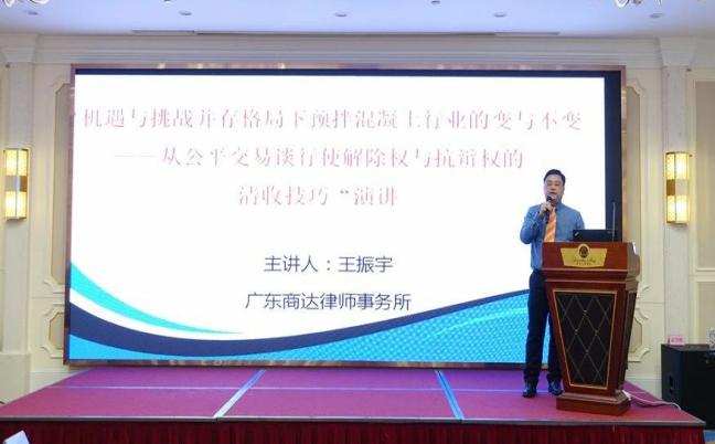 会议最后进入行业交流环节,广东商达律师事务所王振宇高级合伙人作《机遇与挑战并存格局下预拌混凝土行业的变与不变——从公平交易谈行业使用解除权与抗辩权的清收技巧》演讲。省协会混凝土技术部林远煌部长通报了2020年度行业运行情况。林部长从搅拌站站点数、产量、产能、产值、利润等分析了2020年预拌混凝土和预拌砂浆的整体运行情况。随后,与会各地市协会负责人围绕行业绿色发展、诚信建设、行业自律、产能过剩、搅拌站资质到期换证等热点、难点问题进行了交流。省住建厅科信处周锦科四级调研员作总结讲话,周调研员对参会代表就行业存在的问题进行了一一解答。