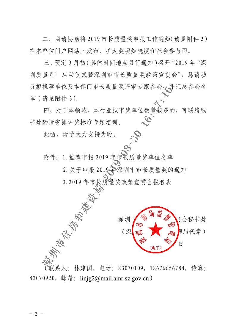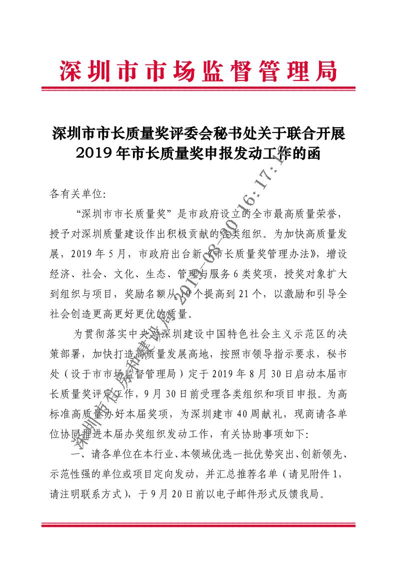 深圳市市长质量奖评委会秘书处关于联合开展2019年市长质量奖申报发动工作的函.pdf