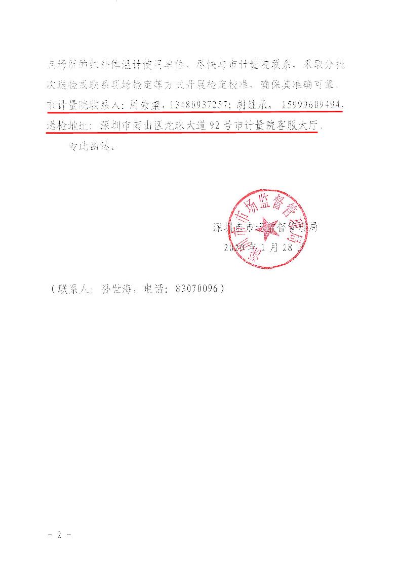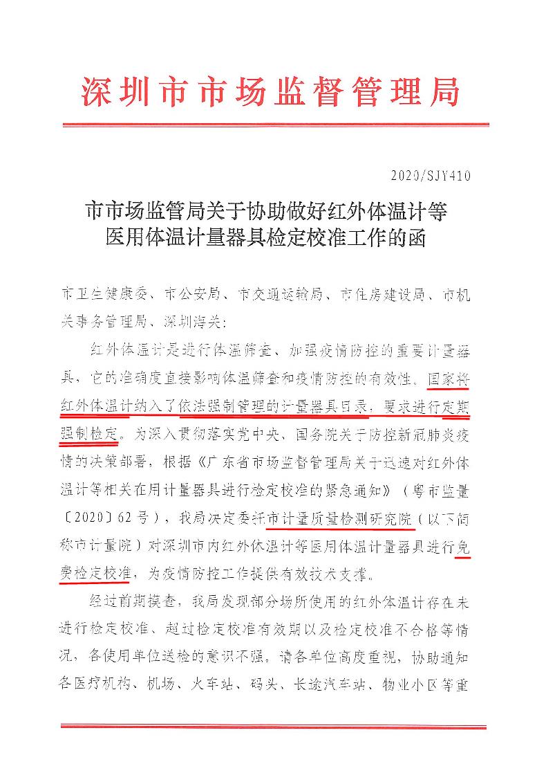 90207182634深圳市市场监督管理局龙岗监管局关于转发《市市场监管局关于协助做好红外线体温计等医用体温计量器具检定校准工作的函》的函(20200131).PDF